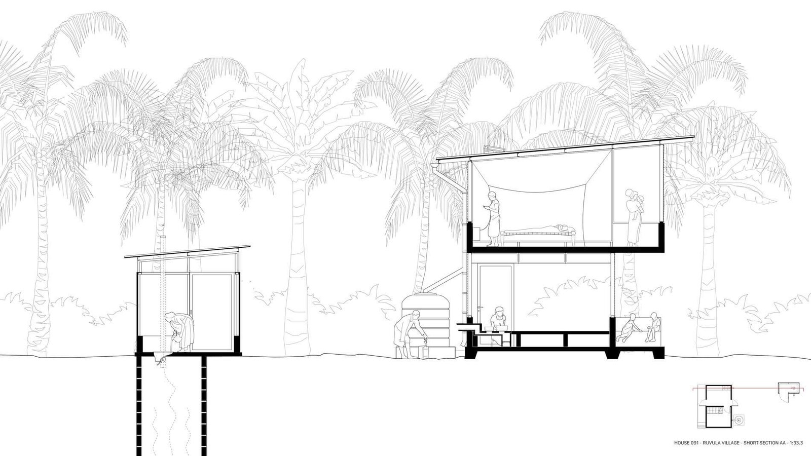 a cross section drawing of rural housing prototype for sub-Saharan Africa