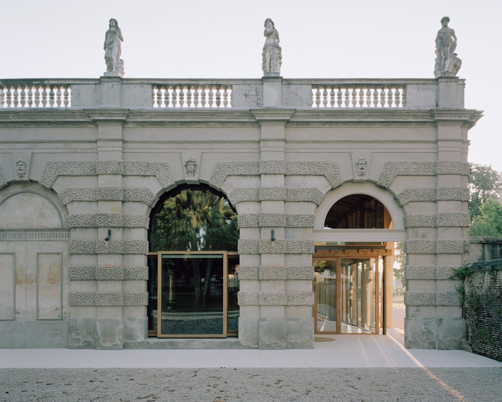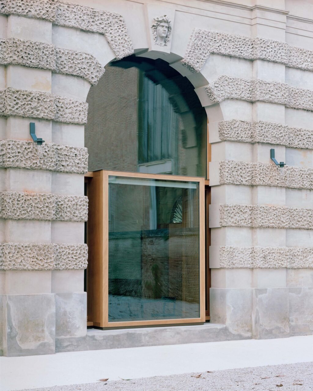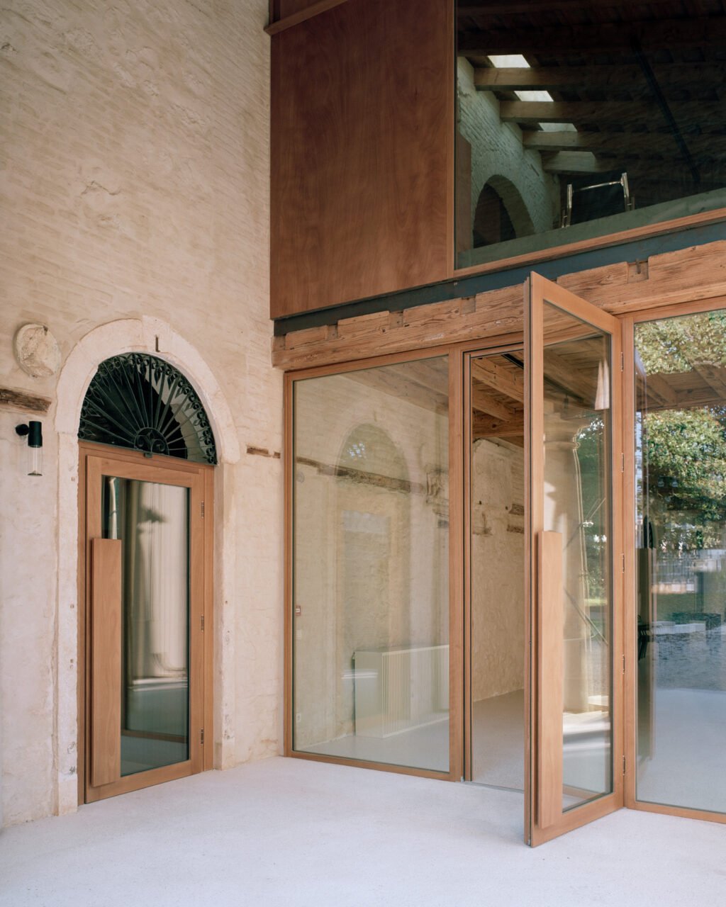 The frame resolves a structurally and compositionally incoherent system resulting from years of abandonment. “The tension between the wooden facade and the 18th-century arches and columns conveys the sense of the project,” said Rigon and Simonetti. It blends “the need for a sincere, and therefore at times antithetical, dialogue between what we inherit from the past and what, on that basis, we can construct today.”