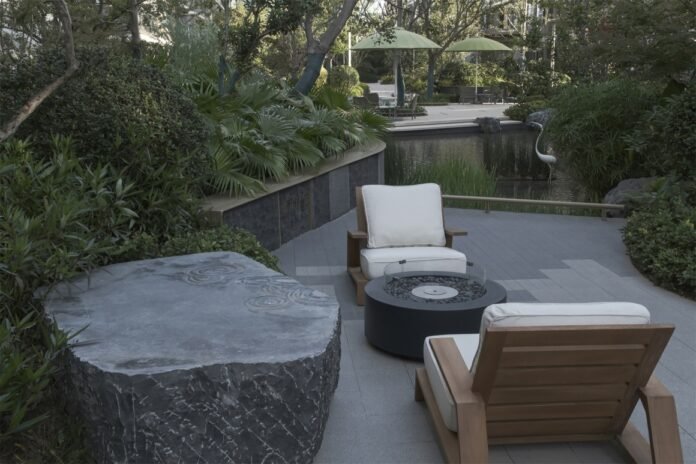 The swimming pool is in an elegant curve, like a sapphire embedded in the courtyard, deep and enchanting. In the center of the pool, the project name “W” is meticulously arranged with stones. Under the interplay of light and shadow, it seems to float lightly on the water surface. Through ingenious color coordination, it appears more three-dimensional and vivid, as if a dreamy symbol is dancing in the water. Sitting by the pool, I watch the light and shadow float and listen to the sounds from the clouds and mist.