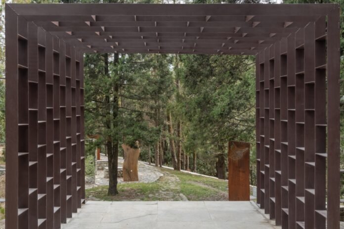 Guided by the notion of a journey, physical and metaphysical, the design invites visitors to reflect on memory, life, and nature simultaneously. The restored stone gate, framed subtly by a contemporary metal structure, sets the tone for this dialogue between past and present. A winding stone path organically meanders through the forest, unravelling the story of the site as each installation emerges as a quiet moment of discovery.
