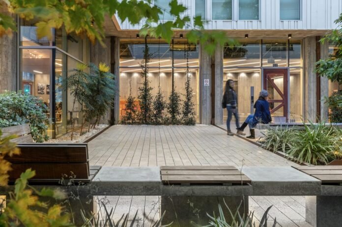 The community is located on the site of the former San Francisco railway station, only a few blocks away from the growing UCSF campus. Instead of leveling the site and reattaching the landscape, the designer eliminated the height difference with a Z-shaped barrier-free passage on the basis of the steep site, which not only added more natural interest to the pedestrian route, but also brought rich scattered scenery to the single atrium space.