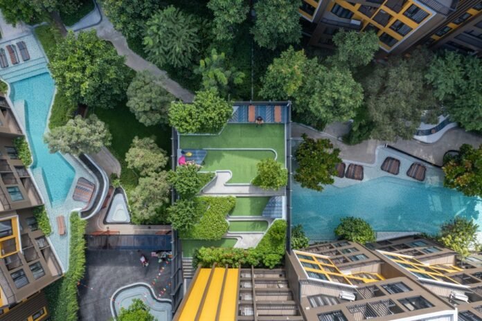Landscape Collaboration:普吉岛是泰国最具文化特色的省份之一,“土生华人”(Peranakan)是早期中国移民和东南亚土著马来人的后代群体。本项目的主旨理念是营建一个能让人联想到“土生华人”文化、艺术和手工艺及其生活方式的家园,在空间概念上引入普吉岛的地形地貌,将其植入于3栋建筑围合形成的封闭内庭中心。