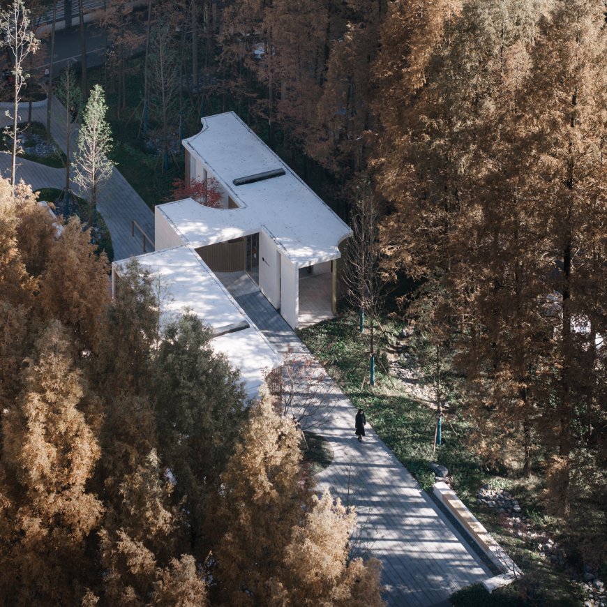 ▽利用现状硬质场地设计游客服务中心“林隐轩” @CreatAR Images