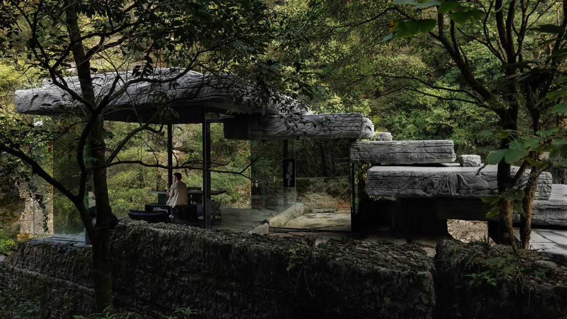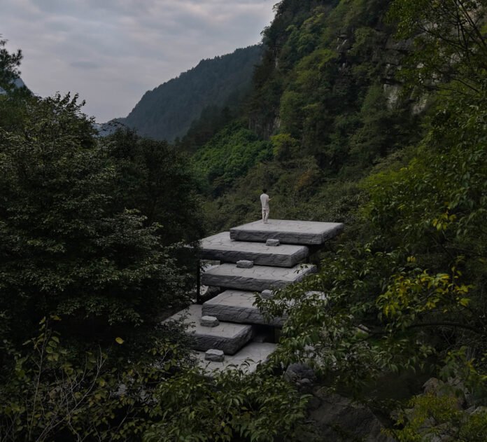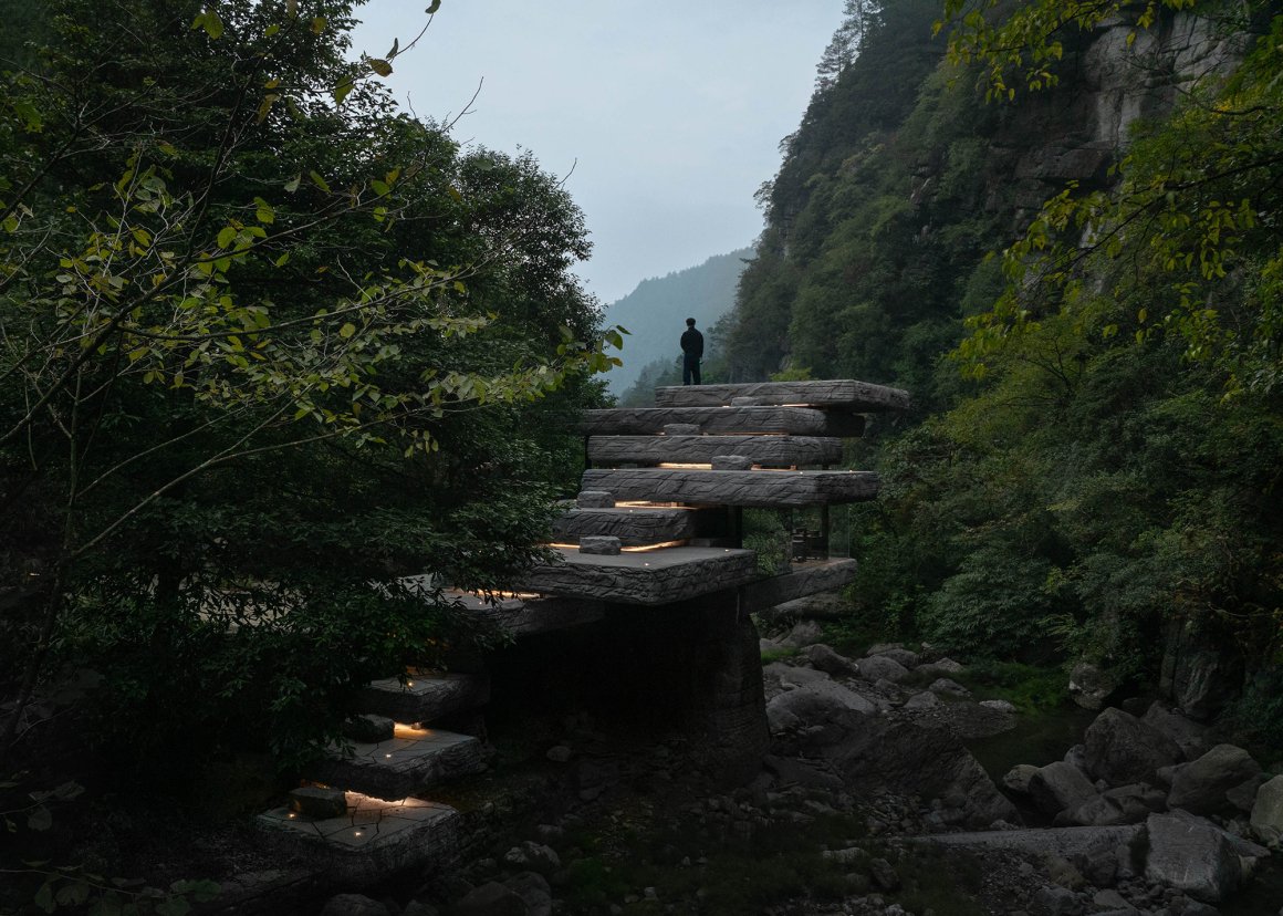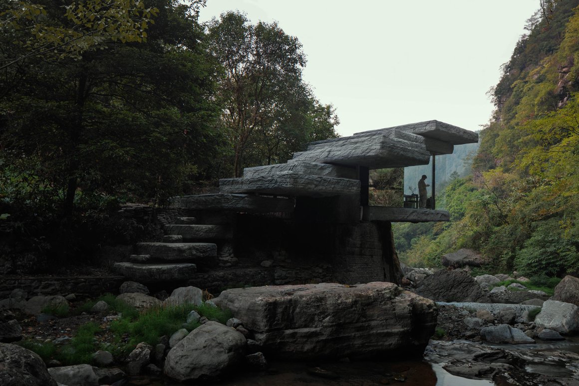 DoDesign:The Drifting Stones project is located in Nanchuan District, Chongqing.It is nestled amidst a landscape surrounded by the majestic wonders of nature: lush evergreen trees, towering vertical cliffs, gentle streams flowing through the valleys, and scattered boulders. As a scenic addition to the owner’s vacation retreat, the Drifting Stones project is situated in a secluded mountain valley within the estate. It comprises two standalone architectural elements: a stone staircase and a stone pavilion. Visitors can follow the stream and ascend the stone steps to enjoy the cool breeze and breathtaking views from the top, or step into the pavilion to enjoy a cup of tea while immersed in nature with the sound of water flowing underneath.