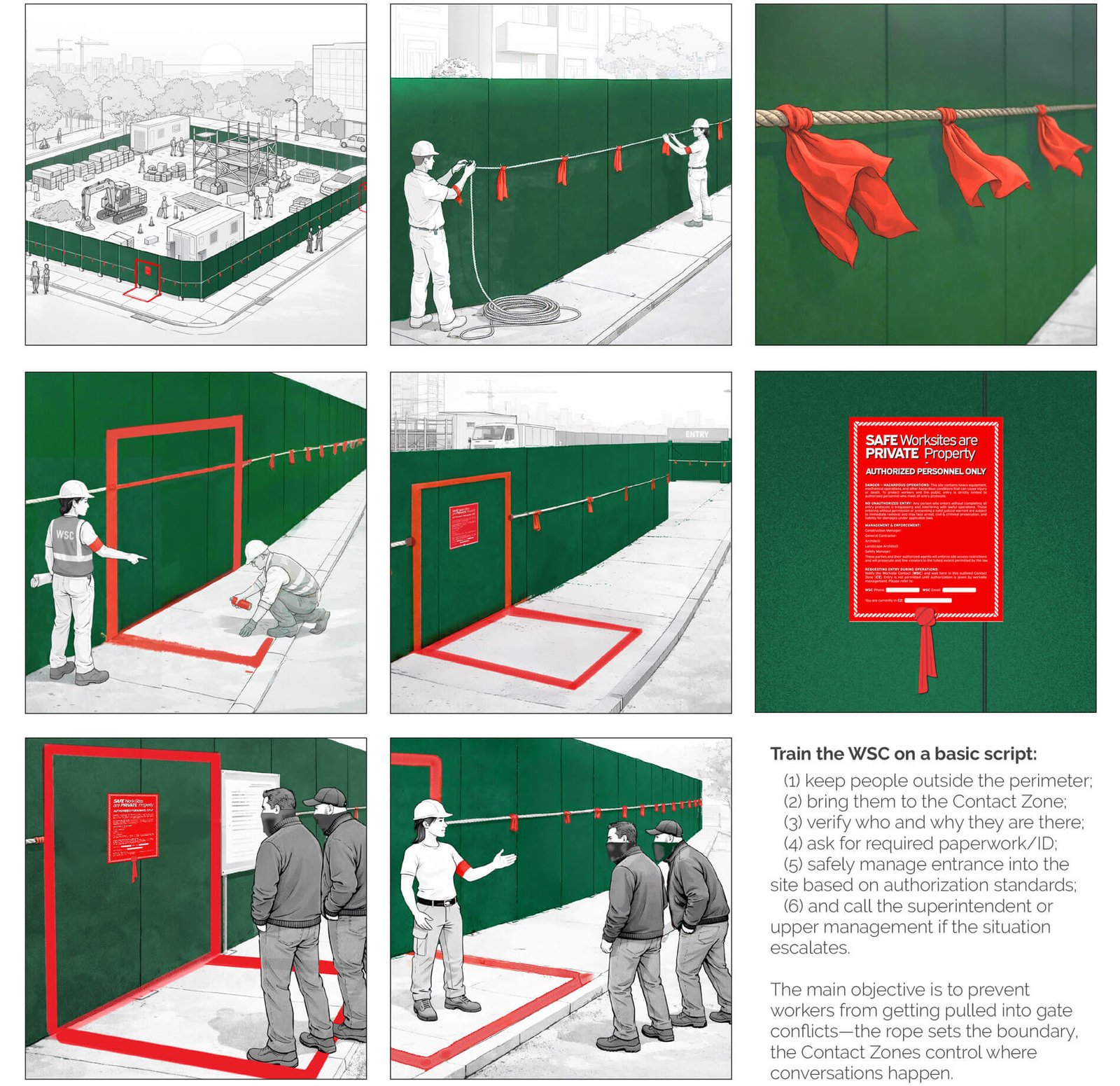“‘The Red Line’ shifts responsibility for access away from individual workers and helps management establish the boundaries of private construction sites,” the project description affirms. “It directs potential conflict away from entry points and provides rules and procedures to strengthen the safety and orderliness of jobsites.”