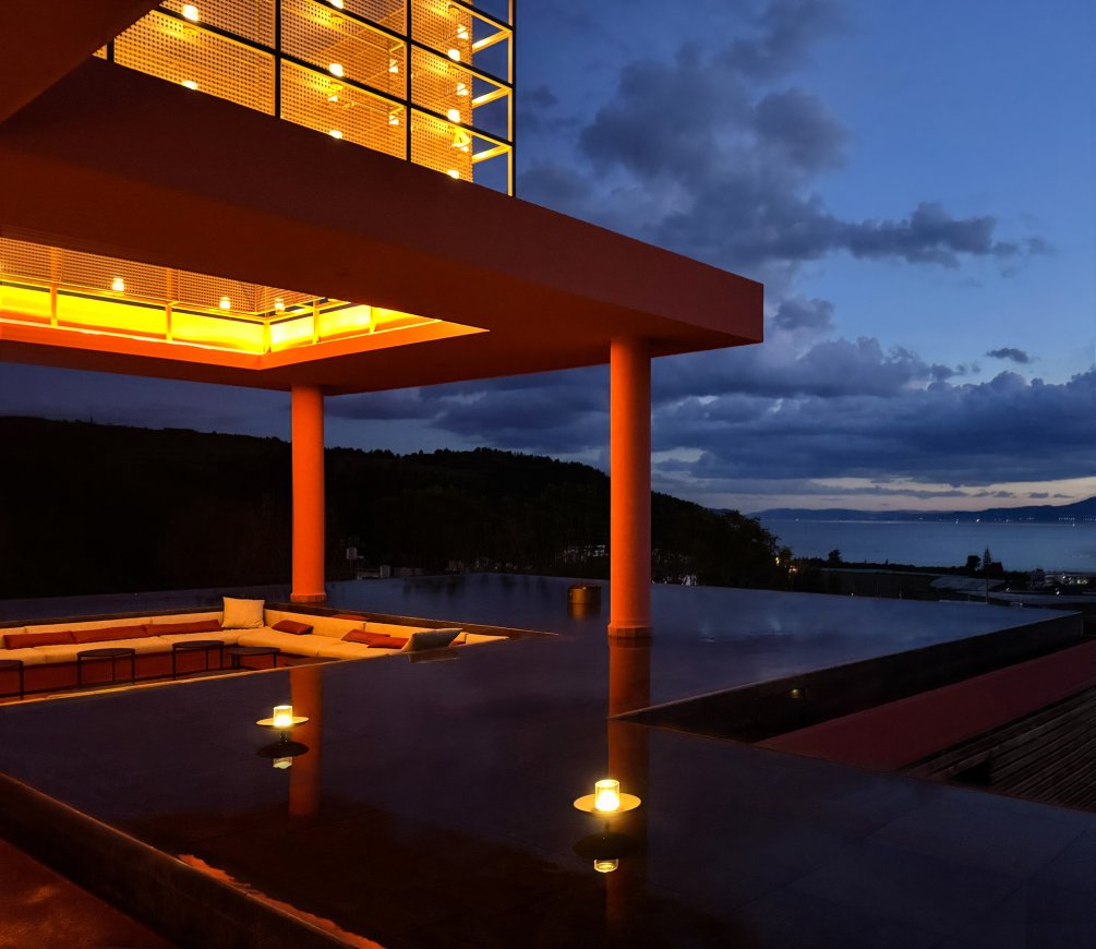 The hotel extends the natural experience to a broader area: the camellia garden is splendid and elegant, the olive garden is serene and profound, the sandy plant garden is full of wild charm, and the golf garden is expansive and spacious. The four theme gardens create a picture of a natural labyrinth, encouraging people to explore, pause, and meditate, and in the interaction with the plants, they can rediscover their connection with the land.