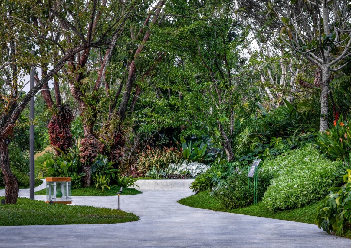 Design Strategy: Based on the morphology of the trees and the surrounding spatial relationships, the Honey Garden are divided into four pocket gardens. We create a flower habitat that is unique to the tropical wonderland in terms of form, color, and leaf shape, achieving an overall atmosphere that is unified yet varied.