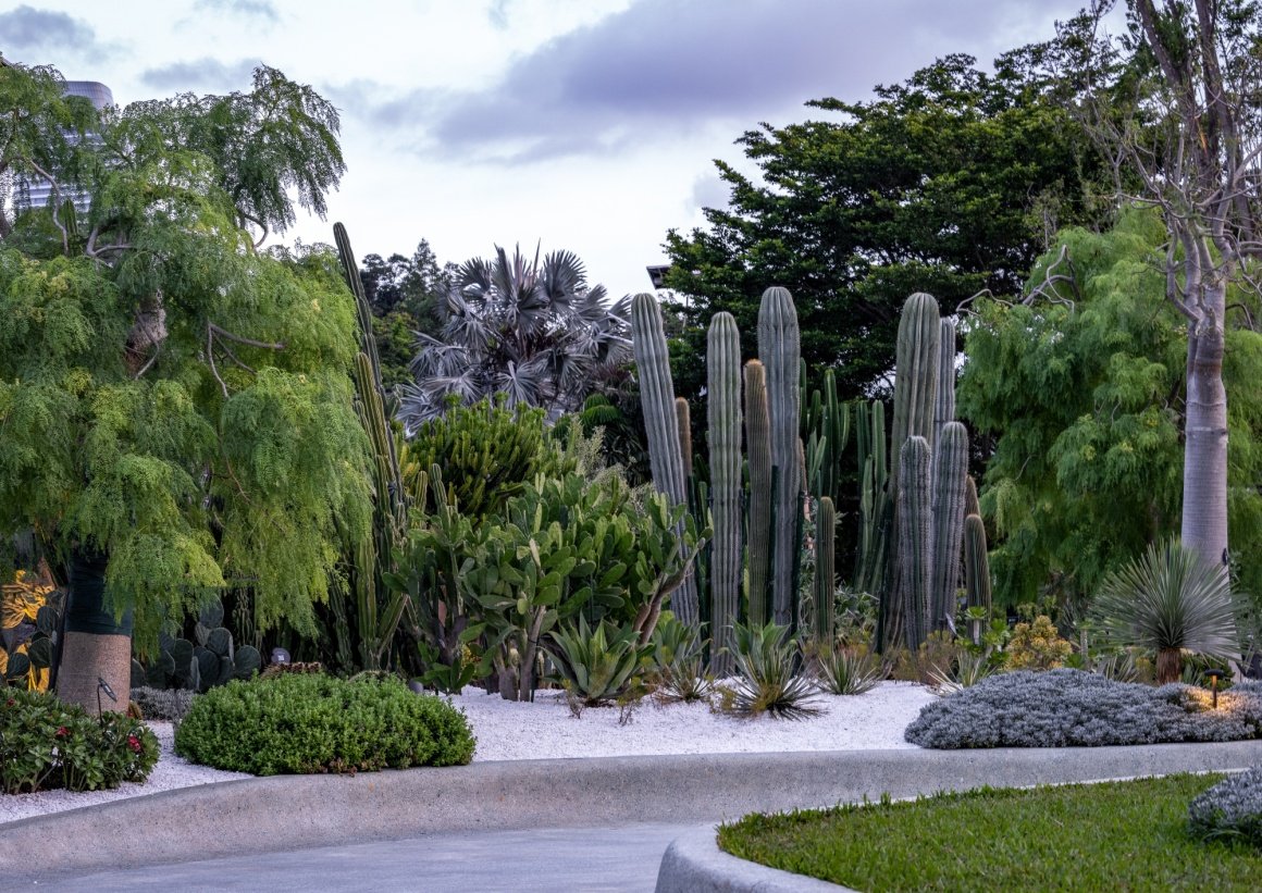 热带奇趣园主题花境分为三大特色区:沙生植物区 、老茎生花区、热带雨林区,花境面积共计约6500㎡,其中特色区中又细分为五大主题。