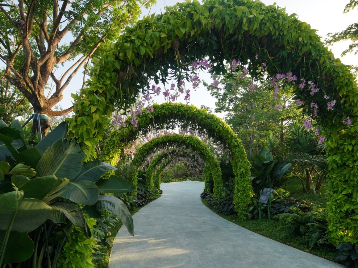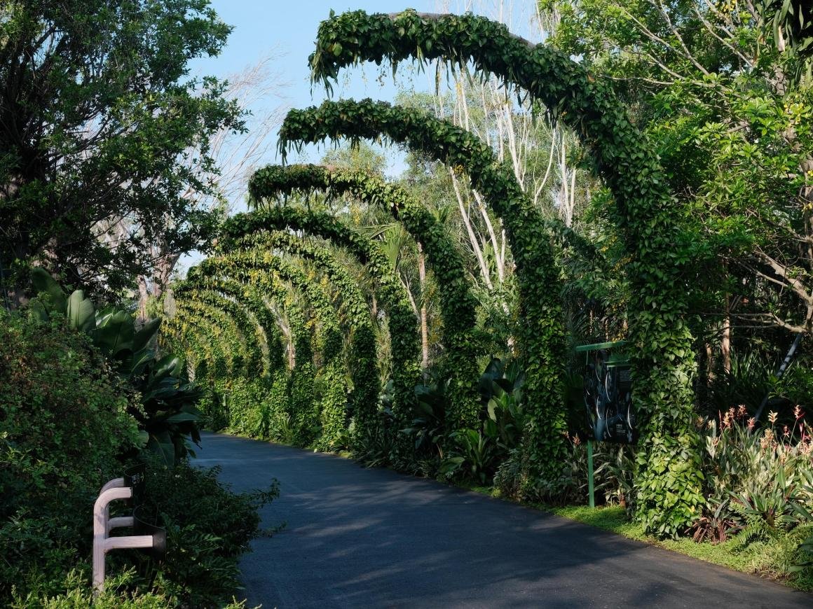 光影交织,廊架如画,自然与艺术在此交融,附生植物点缀其间,仿佛时光在此停驻。