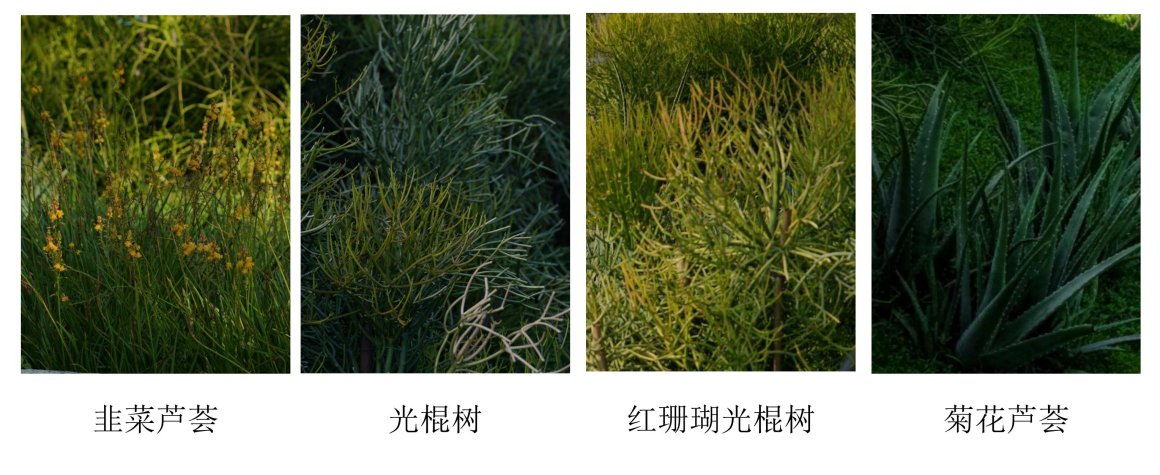 设计策略:以光棍树为骨架,穿插菊花芦荟等植物,局部点缀韭菜芦荟等亮色块。以光棍树为核心,采用放射状布局,向外延展,形成几何张力与荒漠野性交织的异星景观。