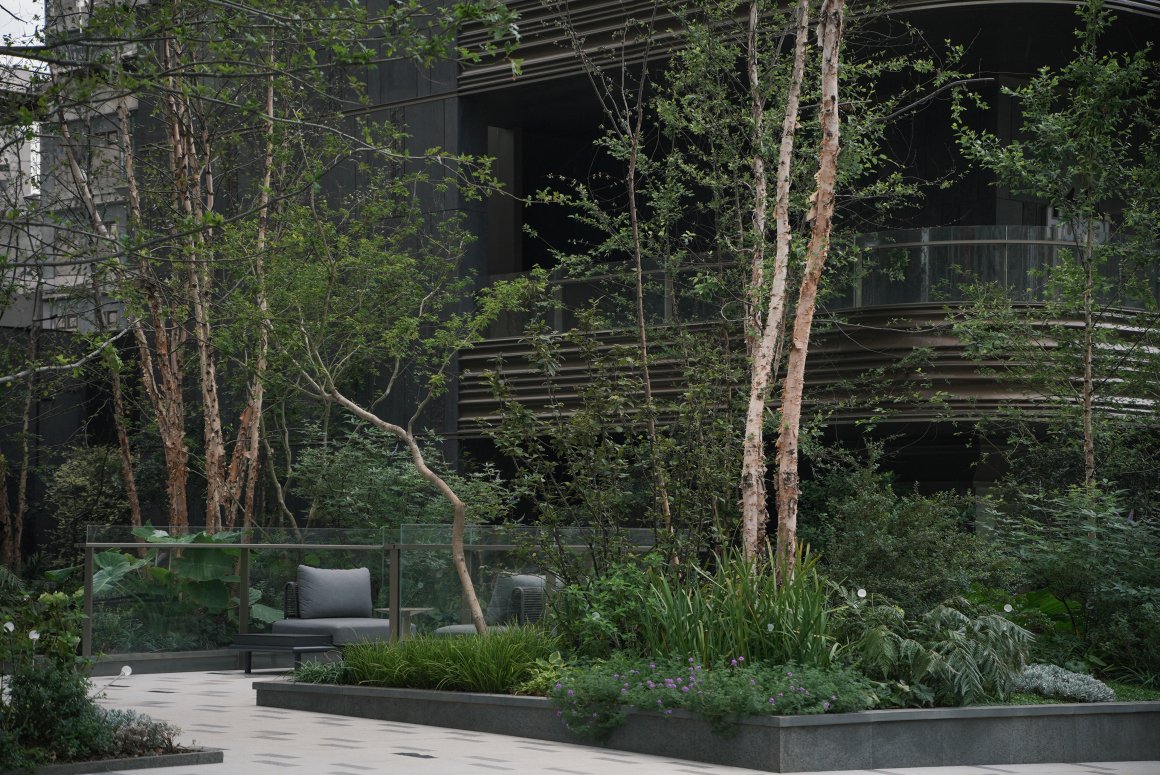 ▽丛生的河桦杂木花园为城市街区带来一抹静谧的自然