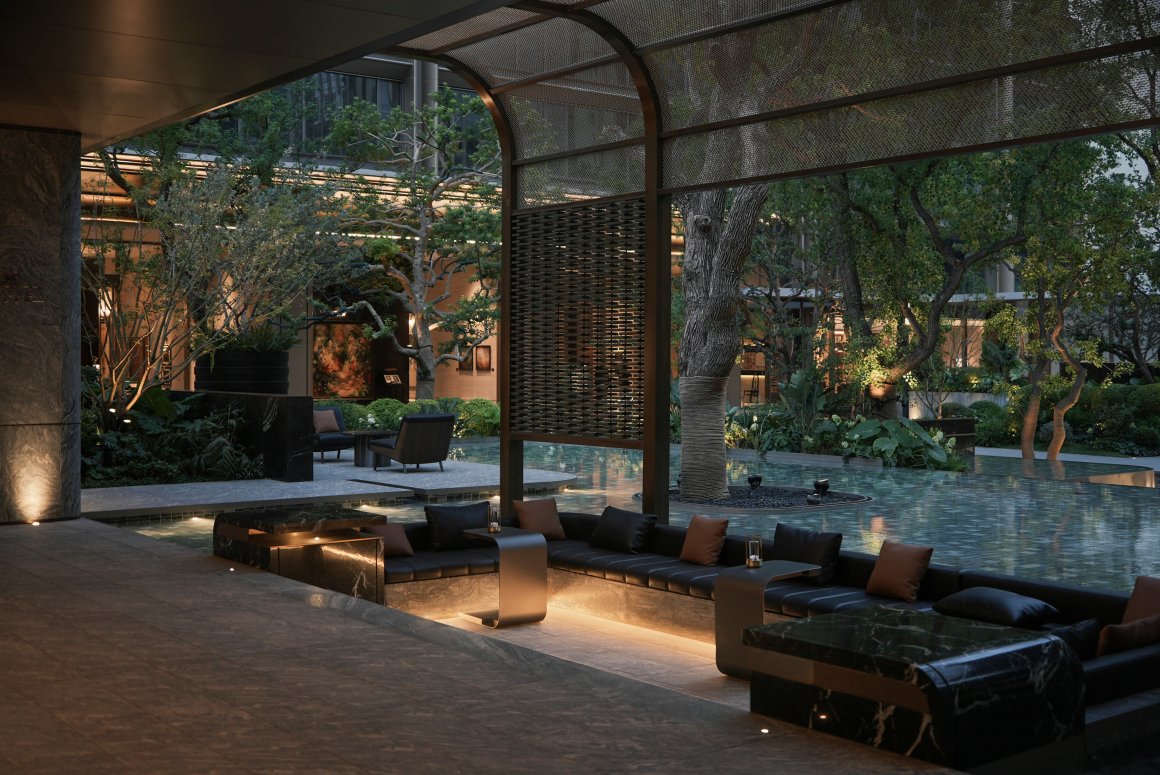 This project is located in Riverside New Town, Changsha, Hunan, east of the Hunan Financial Center, with stunning views overlooking the Xiang River. The design seamlessly integrates the city’s unique history, culture, and natural landscape. Inspired by Changsha’s vibrant old streets, diverse and spicy local cuisine, and profound cultural heritage, the landscape design reflects the city’s dynamic spirit and rich character. By reinterpreting Changsha’s energy and serenity, the design blends opulent luxury with a sense of tranquillity, creating a high-end living experience that combines international urban sophistication with the warmth of local culture.