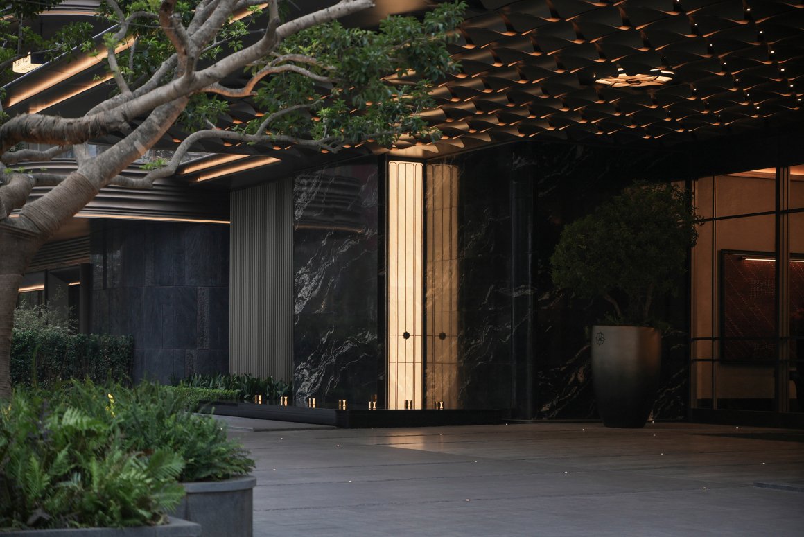 环岛落客后、翡丽门庭的奢阔面宽,以精致高级的设计语言刷新了金融中心的城市界面。