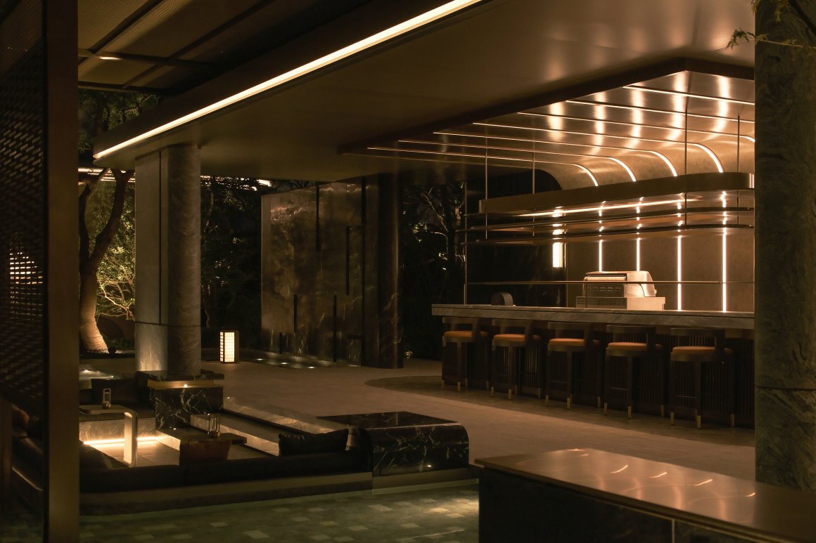酒廊旁边设有餐吧、水吧、花园洽谈区以及滨水休闲区域,构成了多功能的社交与休闲空间。
