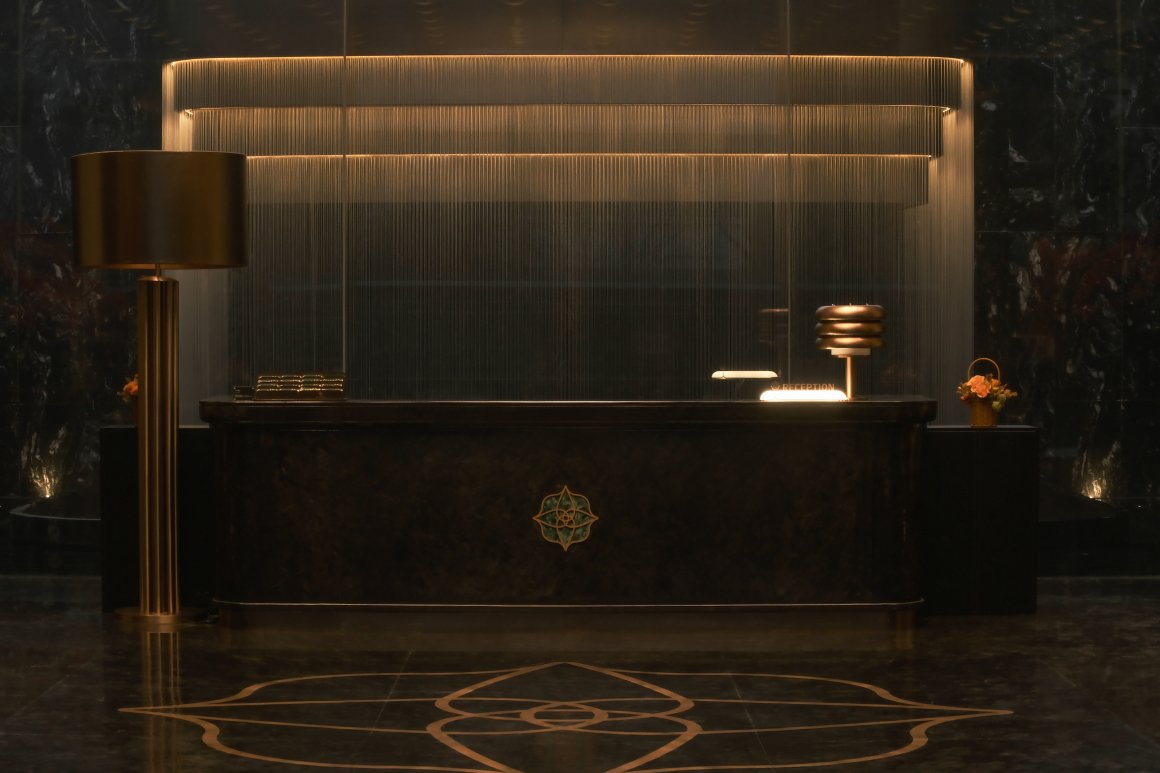 The grand entrance and the nested, layered design of the community lobby exude an air of richness and sophistication. The interplay of deep, subdued tones and flowing textures enhances the sense of depth, adding richness to the spatial expression. The thoughtful use of stone and materials like antique bronze evokes a distinctive charm, where a sense of time and historical depth harmoniously coexist.