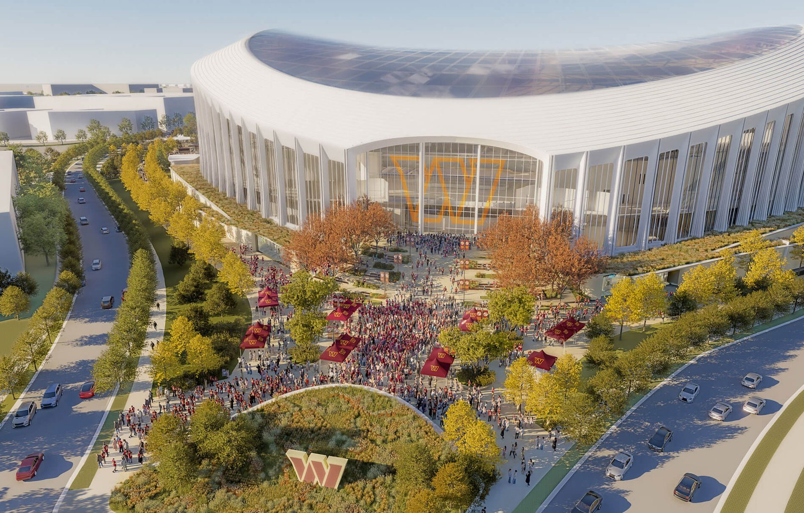 The Washington Commanders NFL franchise has shared updated renderings of a forthcoming stadium designed by HKS.