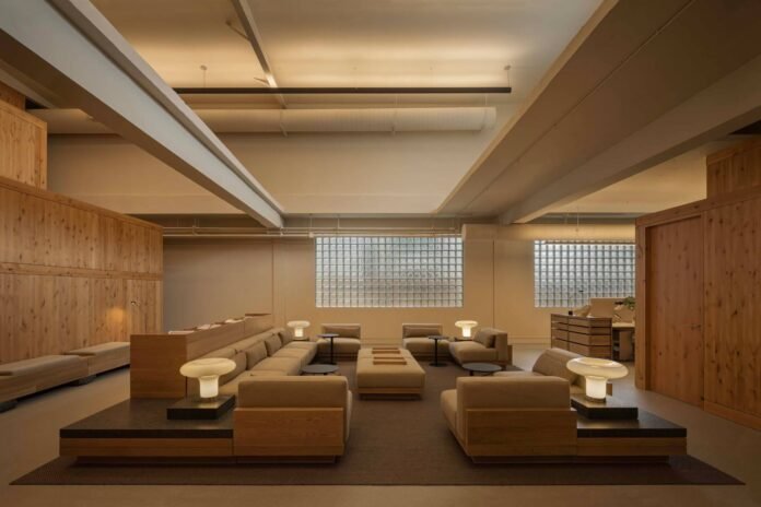 The design team completed a total gut renovation for the new headquarters, stripping the frame down to its original concrete bones and making repairs to the dilapidated building. “The challenge of this project was to make an architecture inside an existing architecture,” said Aldrete. “This was conceptually different from interior design or adaptive reuse, as the objective was not to alter the original architecture, or further its agenda, but to establish a new architecture inside of the old one, and then tune this situation to the point where a clear reciprocal relationship between both became evident.”
