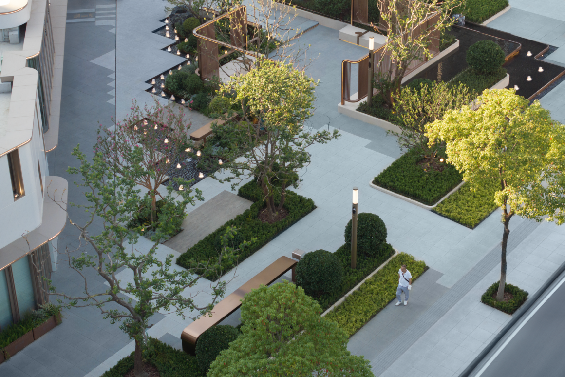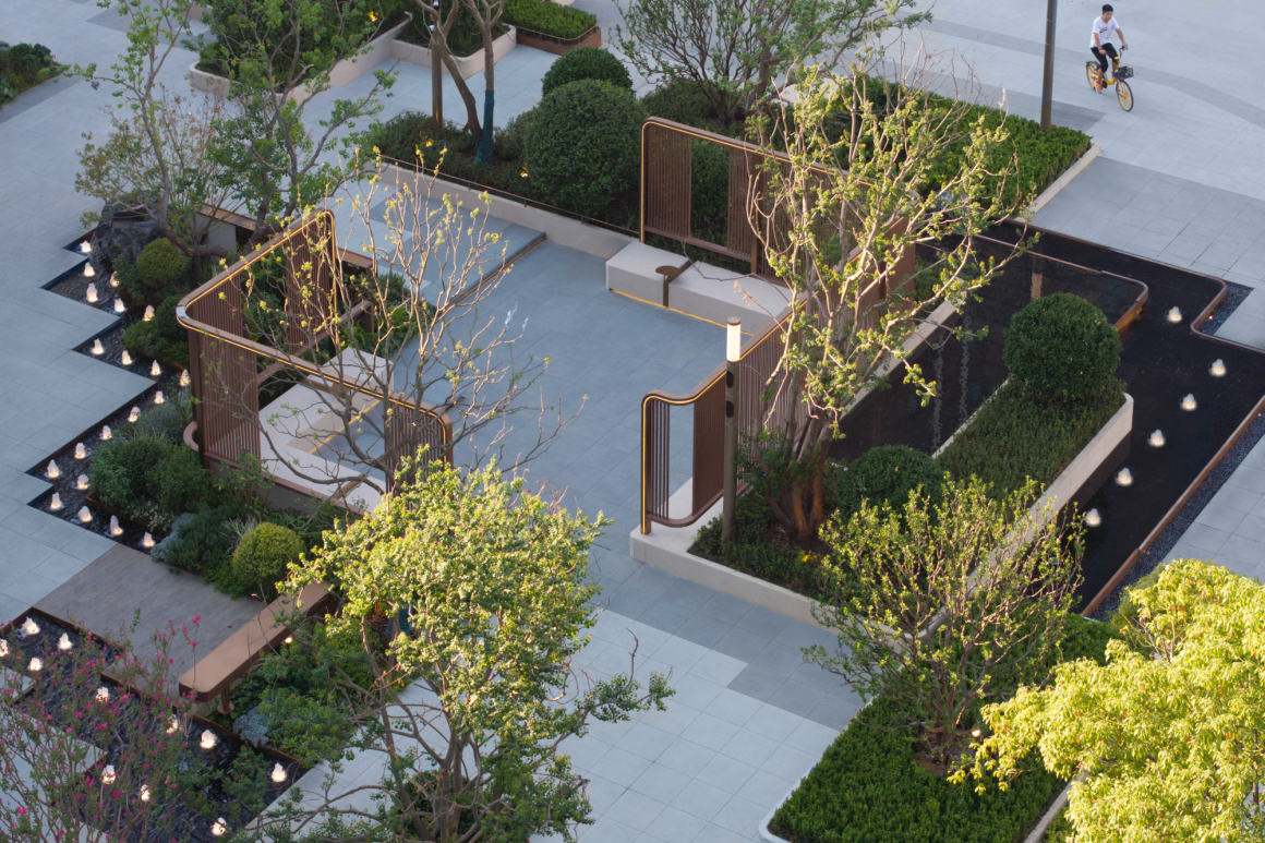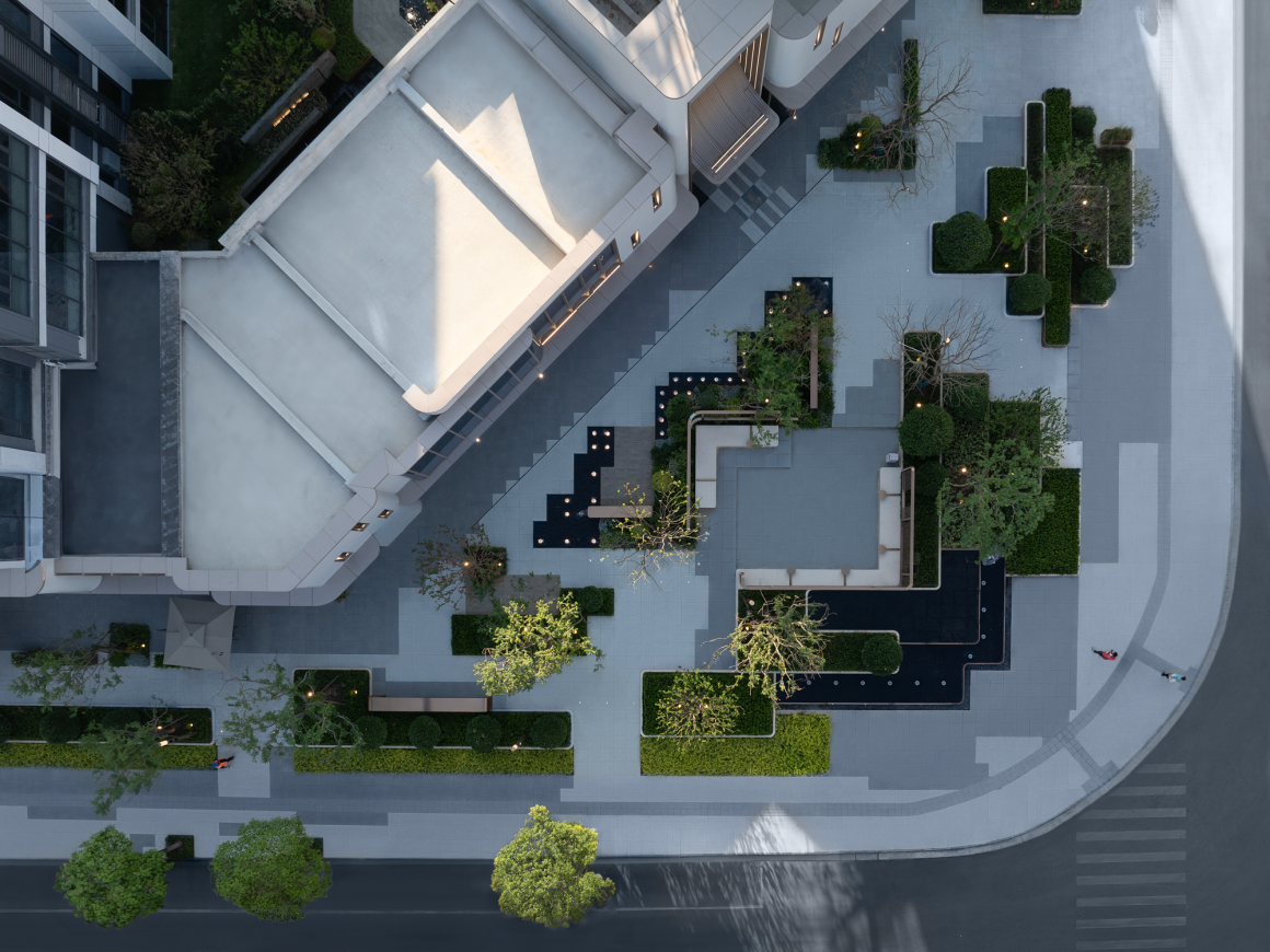 “ 景观希望在此塑造一个体现领域感、腔调感与雅致感的城市综合展示空间,以现代的设计语言,衍生对现代都市生活的探索。”