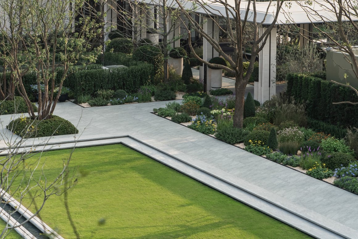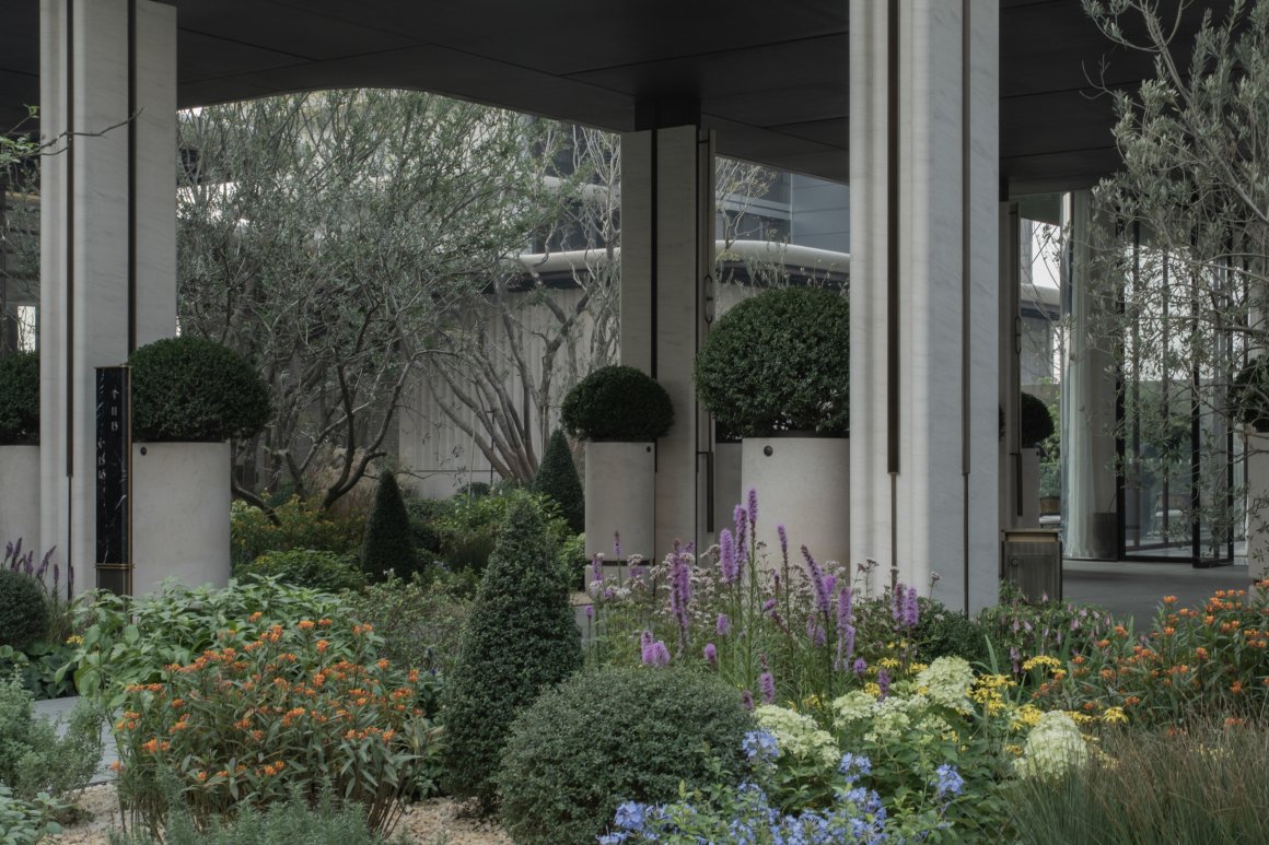 ▽完全对称的花园庭院,被英式腔调的种植调性包围。展现海派腔调更精致、松弛的当代艺术氛围