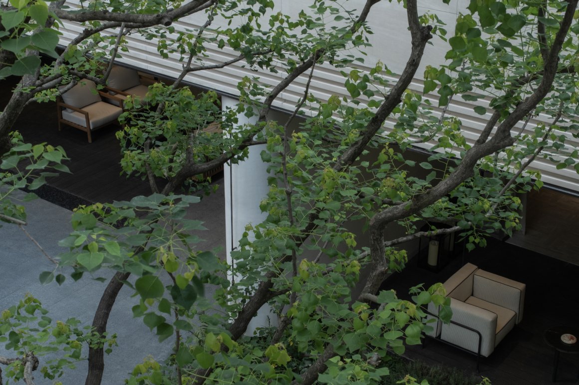位于会所水院的下层,是一个被建筑包围的空间。花园除了考虑四周视线以外,也需要考虑步行动线与停留区的提供。在不超过300平米的空间里,我们尽可能以最轻巧的方式,置入一座可进入的花园。