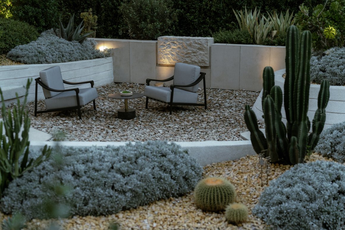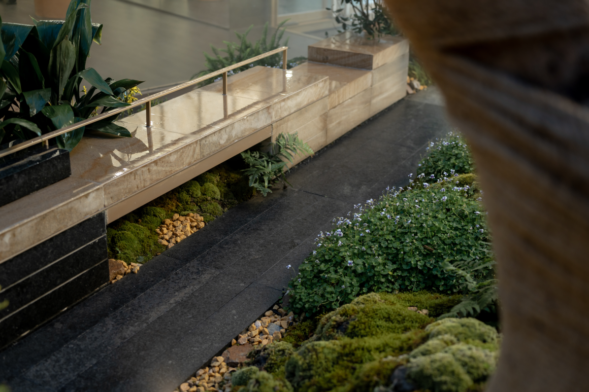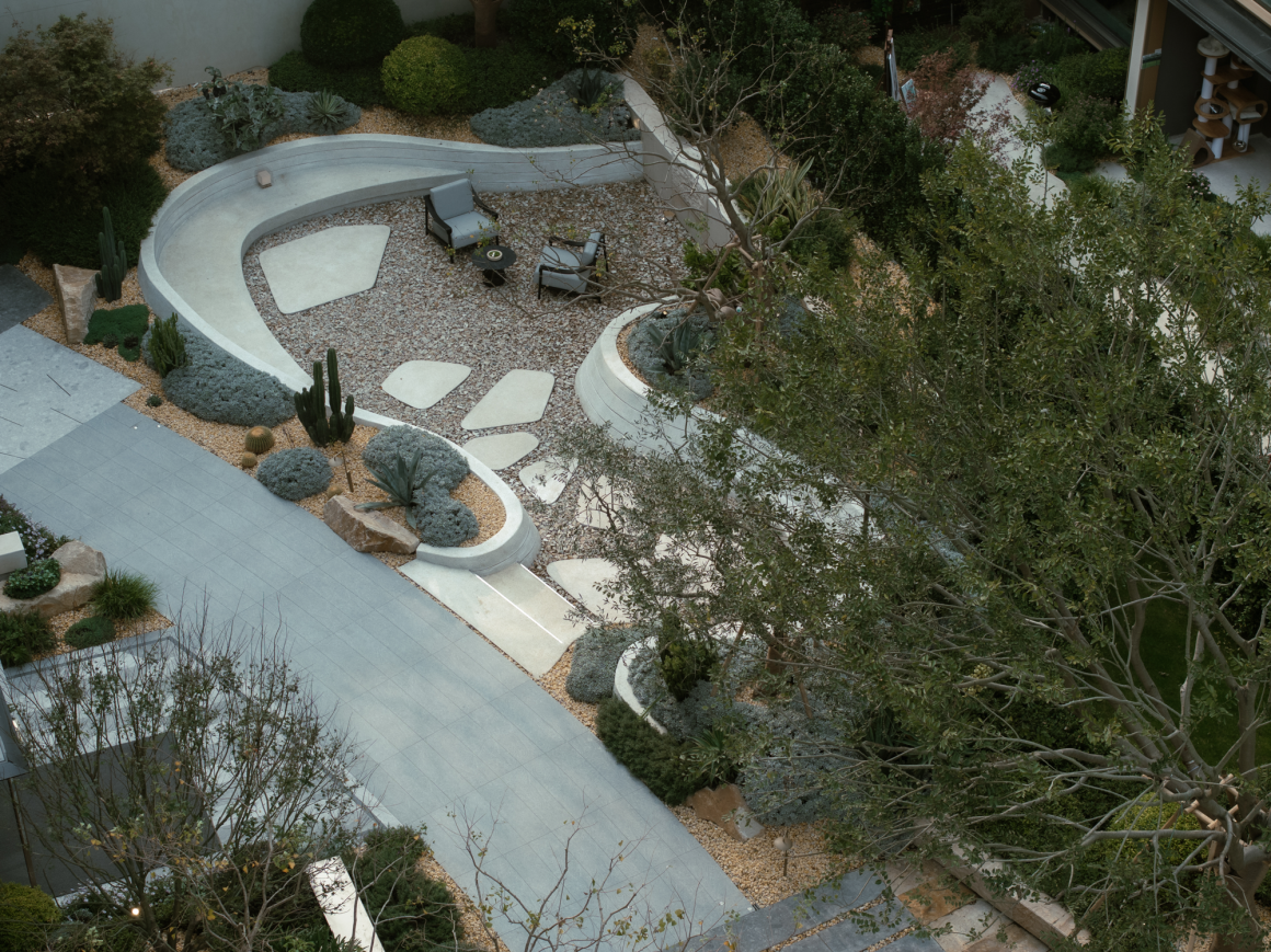 Walking into the four-entry space, a unique frame is formed at the turning point of the flower path, and the scenery stones and flowing water are reflected in it. Walking through the waterscape, the psammophytes on both sides add a sense of art and ornamental value to the courtyard with their peculiar shapes, like natural sculptures, and the artistic wall details create a high-quality rest space, under the backdrop of the waterscape, or meditate, or explore, and taste the quiet and leisurely atmosphere.